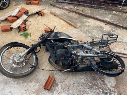 Ao retornar ao local para pegar o veículo, encontrou a sua motocicleta totalmente queimada.