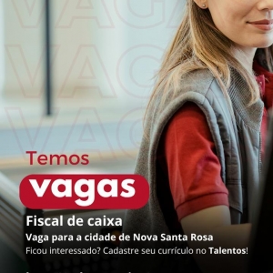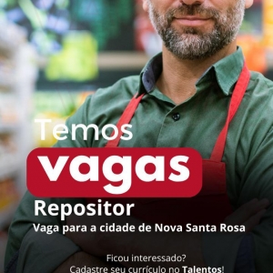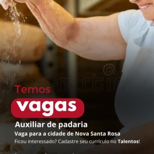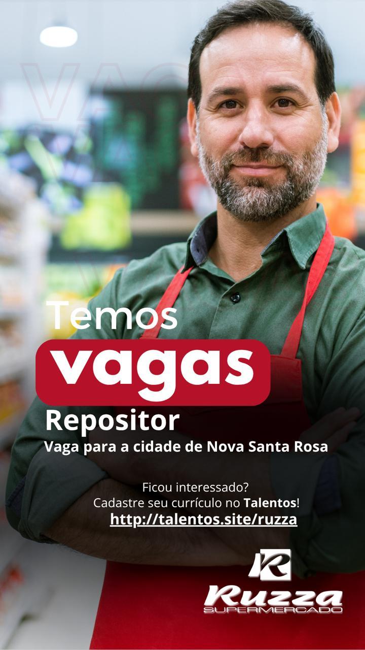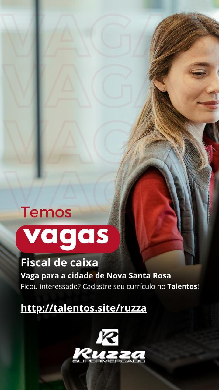 O Supermercado Ruzza de Nova Santa Rosa, anunciou novas oportunidades de trabalho em seu quadro de colaboradores. As vagas disponíveis são para Auxiliar de Padaria, Repositor e Fiscal de Caixa.