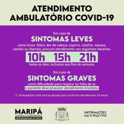 Desde o mês de março, a Secretaria de Saúde de Maripá estabeleceu um cronograma com horários específicos para o atendimento eletivo a suspeitos de Covid-19, no Ambulatório Covid. O cronograma foi estabelecido para melhor organização da equipe que atua na linha de frente no enfrentamento à doença.