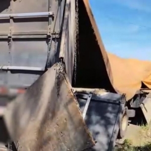 De acordo com as informações apuradas, o caminhão seguia de Santa Isabel com destino a Toledo, quando, na curva de acesso à rodovia 163, a tampa lateral da carroceria arrebentou e os sacos caíram do veículo.