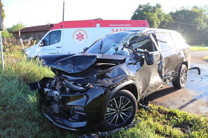 Um veículo Tiggo, com placas de Itaipulândia, seguia no sentido Itaipulândia/Missal quando colidiu violentamente na lateral de um caminhão Volkswagen, emplacado em Santa Helena, que se deslocava no sentido oposto, Missal/Itaipulândia, e acessava a Linha Progresso.