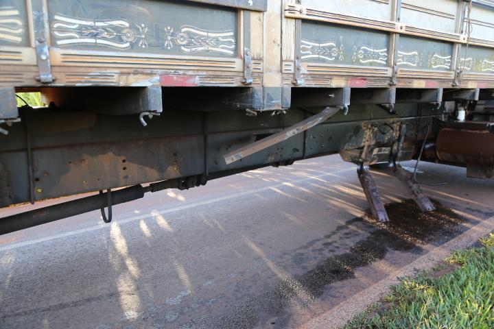 O impacto da colisão foi tão intenso que arrancou o tanque de combustível do caminhão, espalhando óleo diesel pela pista. Uma equipe do Pátio de Máquinas da prefeitura de Itaipulândia foi acionada para realizar a limpeza da via.