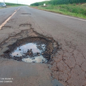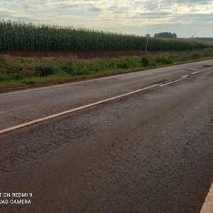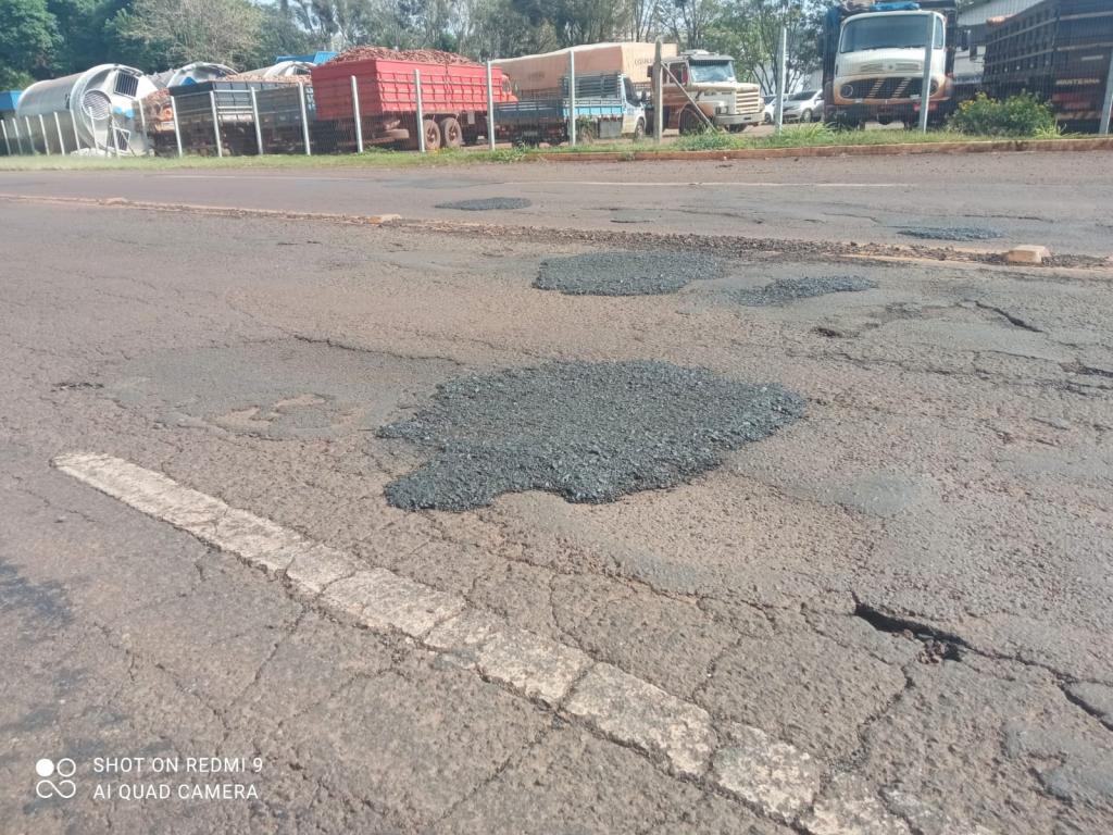 A maioria dos buracos foram tapados, mas uma boa parte segue sem a melhoria temporária, especialmente a partir do Arroio Quatro Pontes até o aeroporto de Marechal Candido Rondon.
