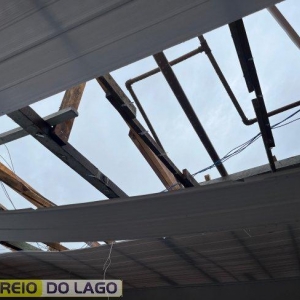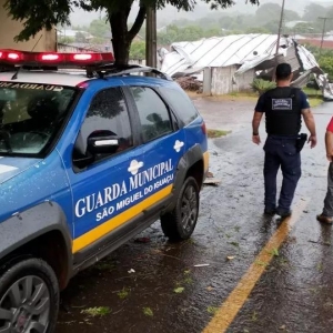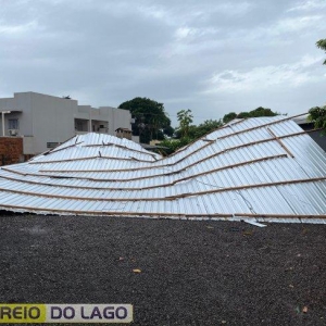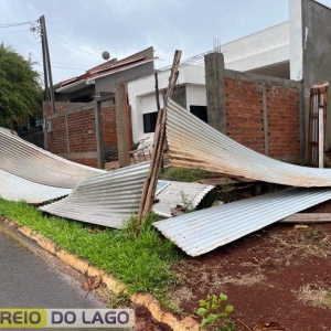 O temporal também provocou destelhamento e queda de árvores em São Miguel do Iguaçu.