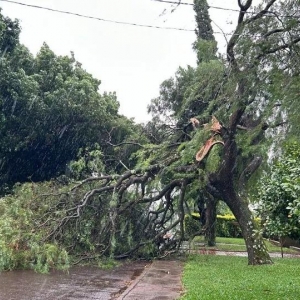 Queda de árvores e postes também foi registrada em Foz do Iguaçu.