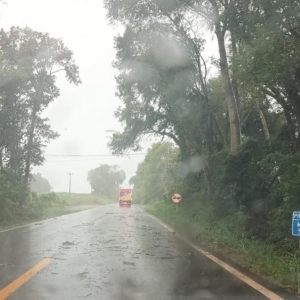 Na saída da Cidade, sentindo à Maripá, um galho também acabou caindo sobre a rodovia.