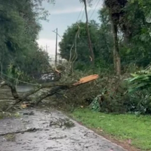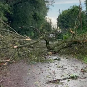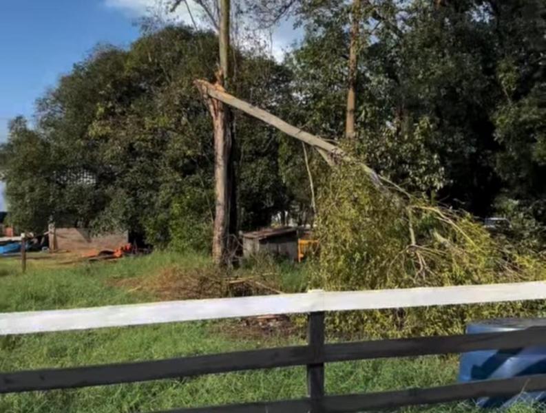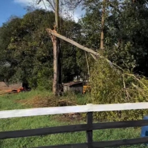 Na região da Vila Rural também houve queda de galhos e árvores, sendo algumas às margens da BR-163.