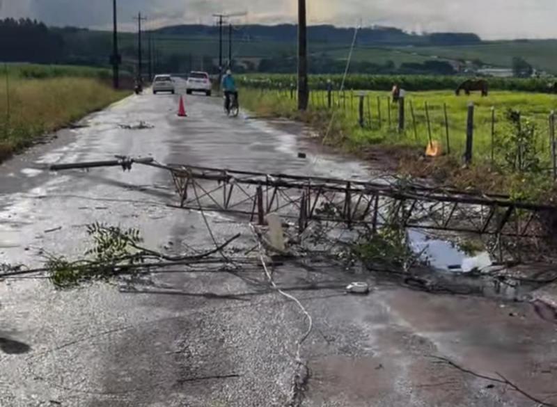 Os ventos também derrubaram uma torre, às margens da estrada da Lira, que acabou atingindo postes luz, que foram danificados. Fios de energia foram rompidos e a região está sem eletricidade.