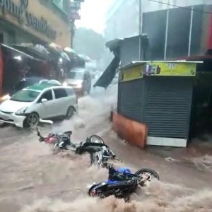 Fortes chuvas registradas na fronteira do Brasil com o Paraguai causaram estragos na manhã desta terça-feira (12). Forte enxurrada arrastou motos e carros pelo centro das cidades e alagou estabelecimentos comerciais.