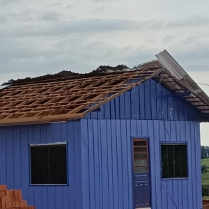 Em uma casa na saída de Mercedes para Arroio Guaçu, parte do telhado foi arrancado com a força dos ventos.