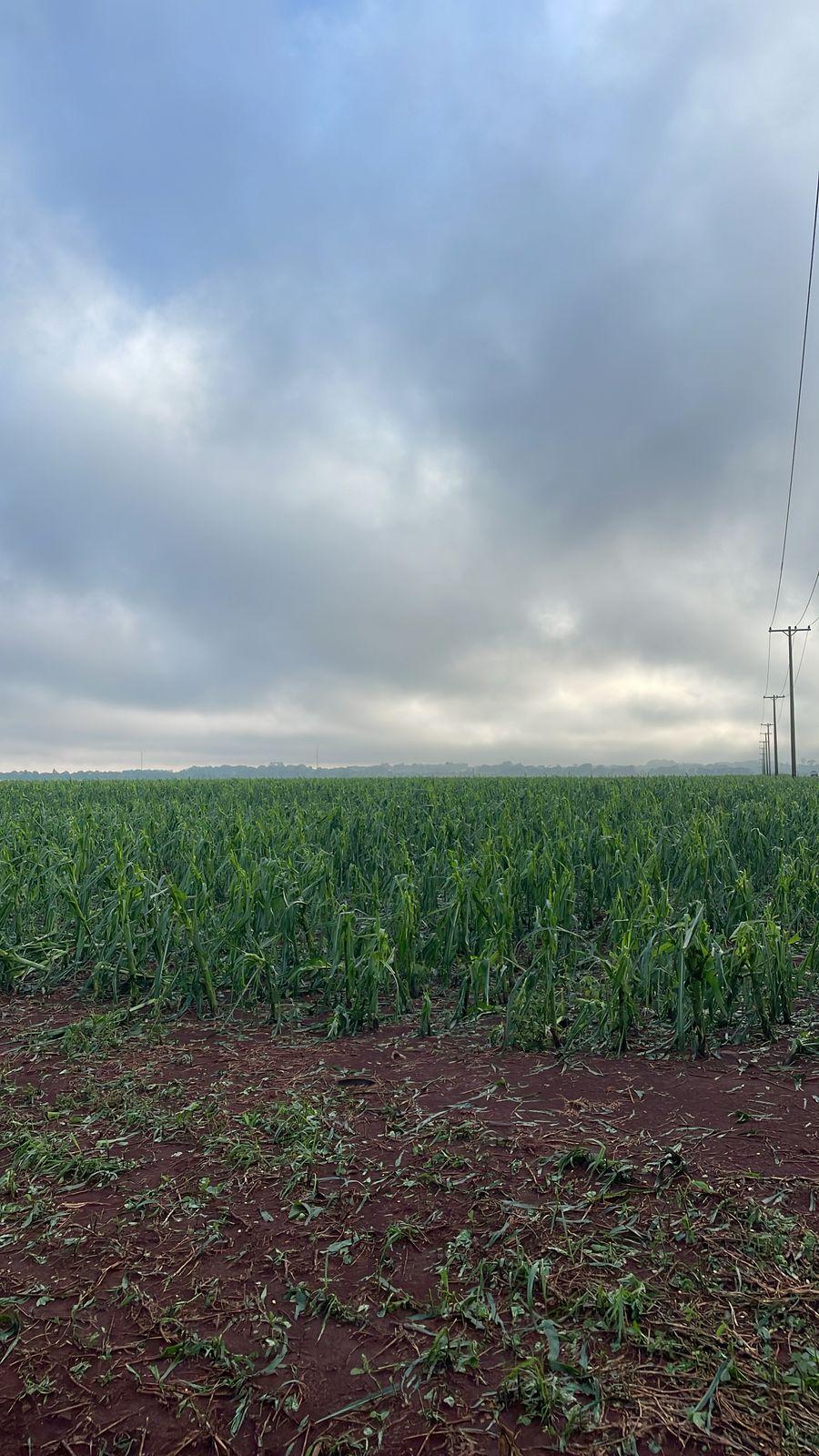 O temporal veio acompanhado de uma intensa chuva de granizo, que destruiu grandes áreas de lavouras de milho e outras plantações. “O que o granizo não destruiu, o vento derrubou”, relatou à nossa reportagem um agricultor residente em Marechal Cândido Rondon, que possui propriedades rurais em Katuetê.