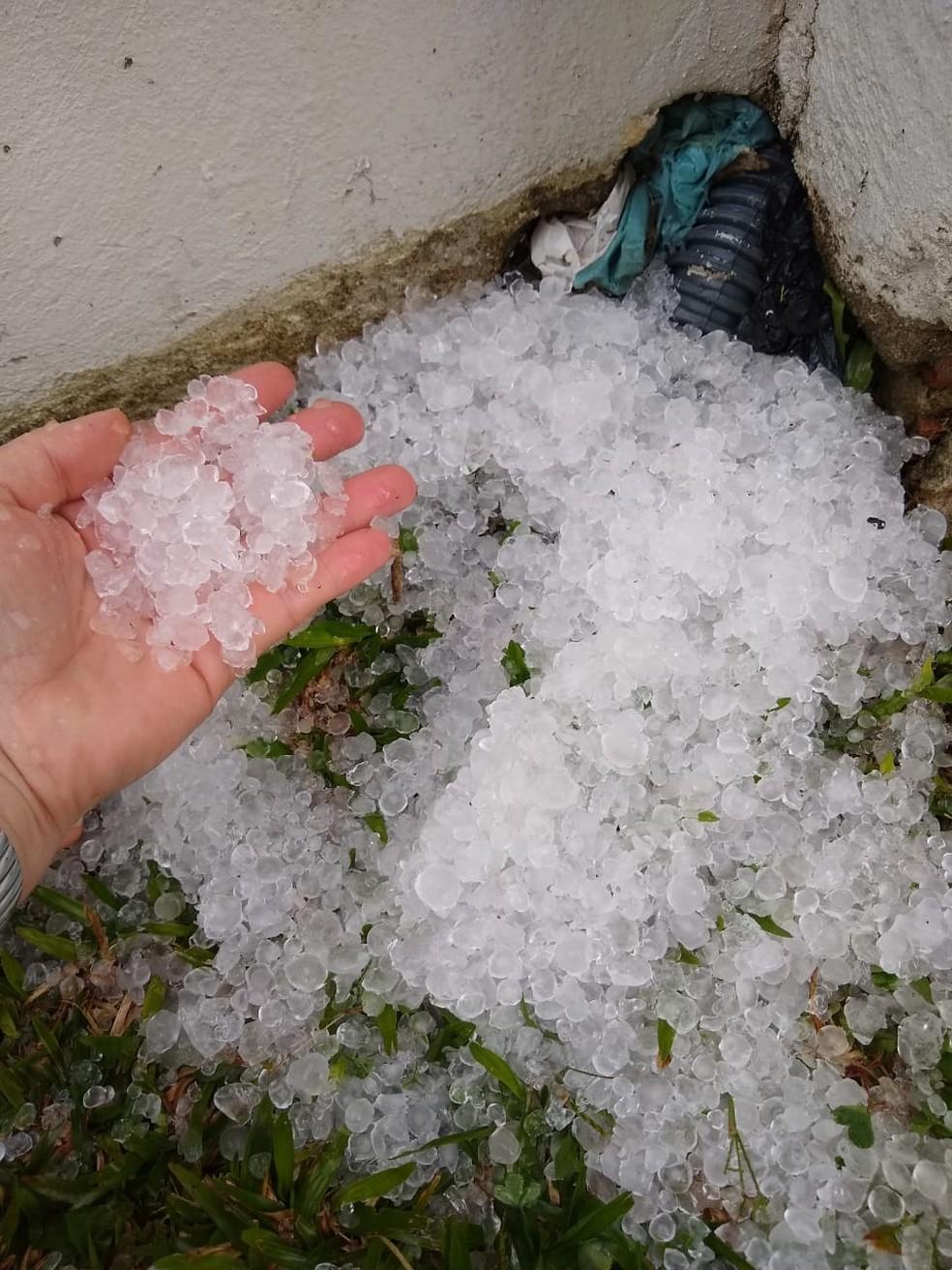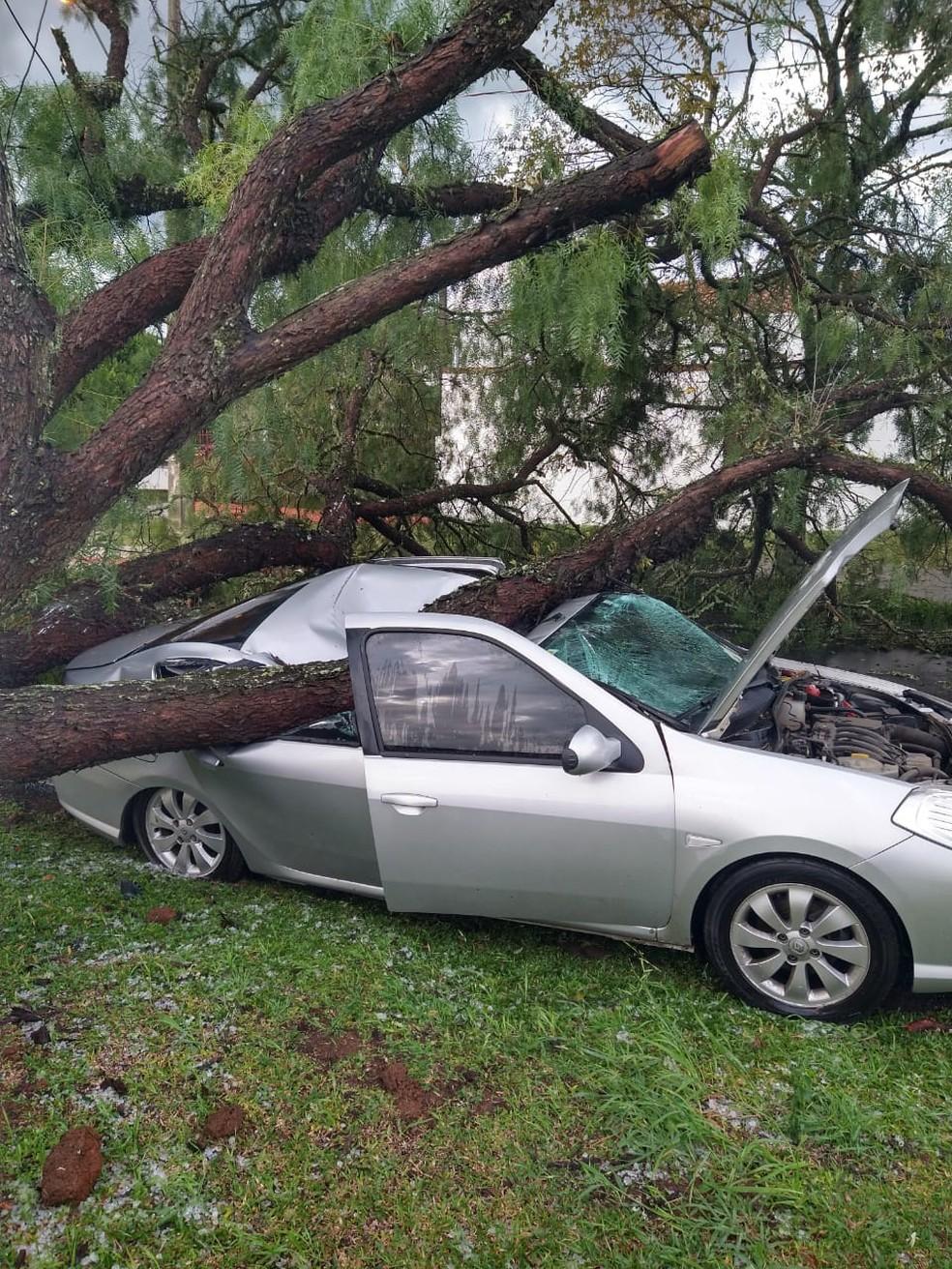 Um temporal derrubou árvores na tarde desta segunda-feira (13), em São Mateus do Sul, na região Sul do Paraná. A chuva veio com granizo em algumas regiões da cidade.