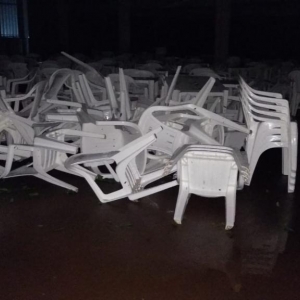 A pista do Arrancadão de Tratores que tinha programação a partir da noite de hoje também ficou danificada, estruturas metálicas ficaram torcidas.