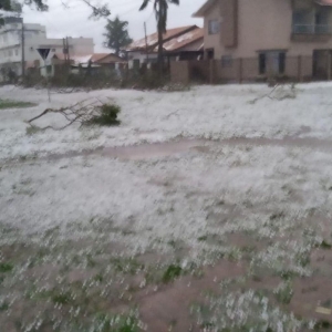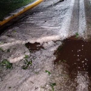 Um temporal de granizo destruiu lavouras de milho e o centro da cidade de Maripá na noite desta sexta-feira (22).