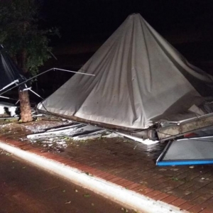 Imagens mostram grande quantidade de granizo na avenida central da cidade após duas horas depois do temporal, o centro da cidade ficou irreconhecível, árvores foram arrancadas, fachadas de comércio danificados, residências tiveram o telhado quebrado, o Amarelão, como é conhecido o parque de exposição da cidade ficou com tendas e expositores completamente danificados. A festa em comemoração ao aniversário do município iniciou na quinta-feira e deveria se estender até o domingo. É muito provável que a programação seja cancelada pelo prefeito Rodrigo Schanoski ainda na manhã de sábado. A meses o município se preparava para a grande festa que tem uma enorme tradição na região.