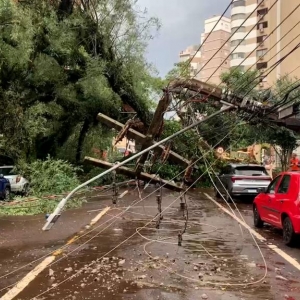 Na rua Mato Grosso, uma árvore de grande porte foi arrancada pela ventania e interditou a via, entre as ruas Vicente Machado e Voluntários da Pátria. Na queda, a árvore caiu sobre os fios de iluminação derrubando postes na região. Casas e comércios ficaram sem energia elétrica. Uma equipe da Copel trabalha para restabelecer o abastecimento.