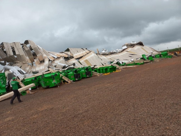 O barracão da empresa Schemaq de equipamentos agrícolas ficou completamente destruído.