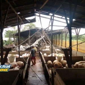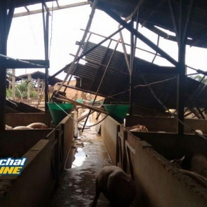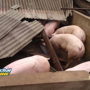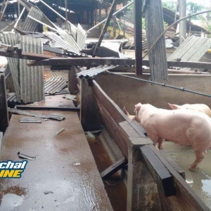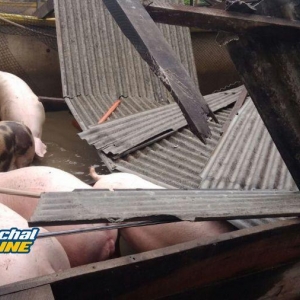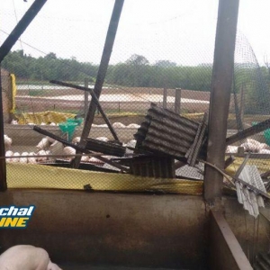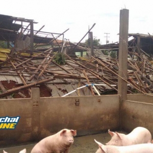 Segundo informações repassadas para nossa equipe, à força do vento derrubou dois chiqueiros, onde estavam cerca de 1750 suínos, matando apenas um animal.