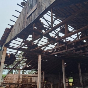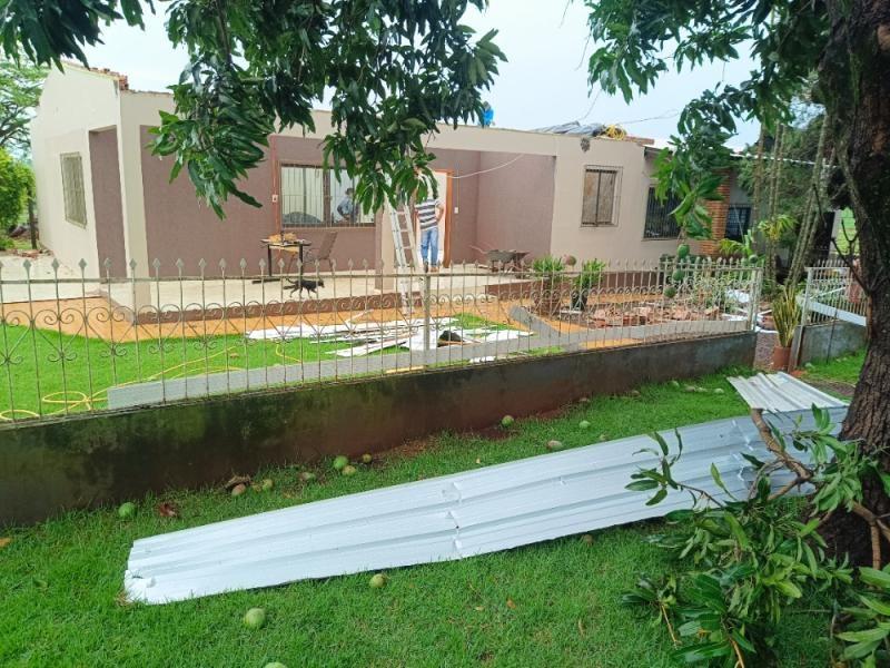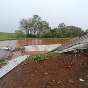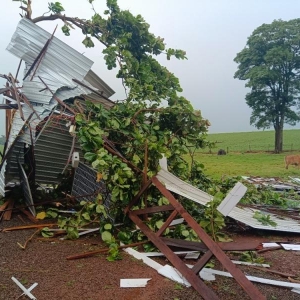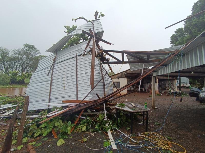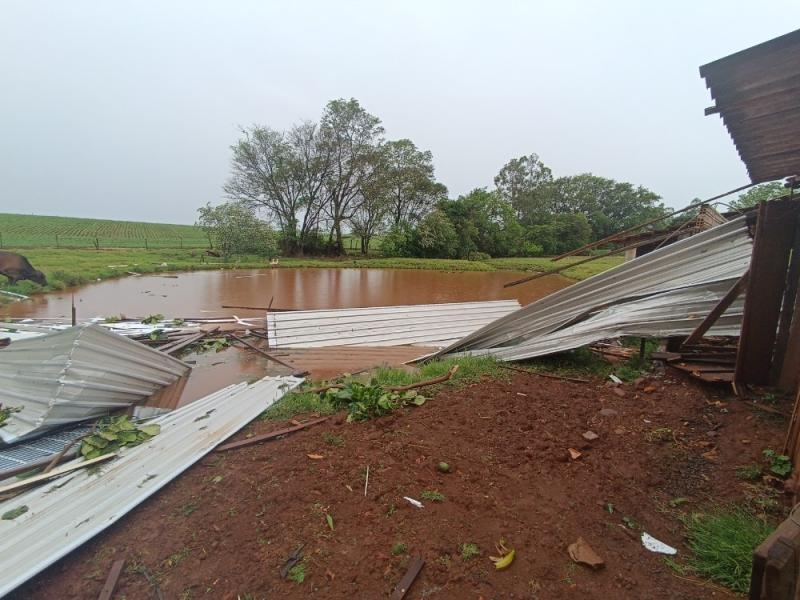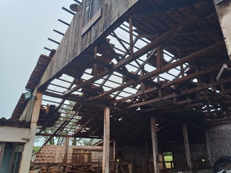 Além dos estragos na casa, os ventos derrubaram árvores e galhos, além de destelhar um galpão na propriedade rural.