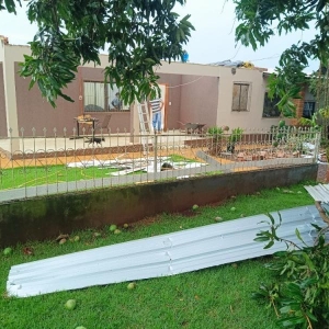 O vento arrancou por completo o telhado de uma parte da casa, além de destruir o forro, parte elétrica e derrubar vários tijolos. Sem telhado, vários móveis acabaram molhando com a chuva, ficando danificados.