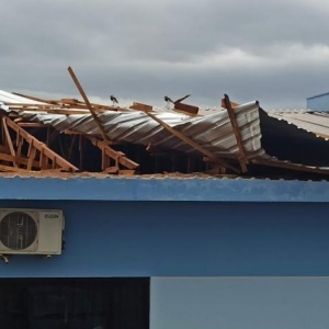 Nas unidades de Saúde do Jardim Concórdia a força do vento destelhou parcialmente o telhado que é coberto com zinco, arrancando junto com a madeira entrando água dentro.