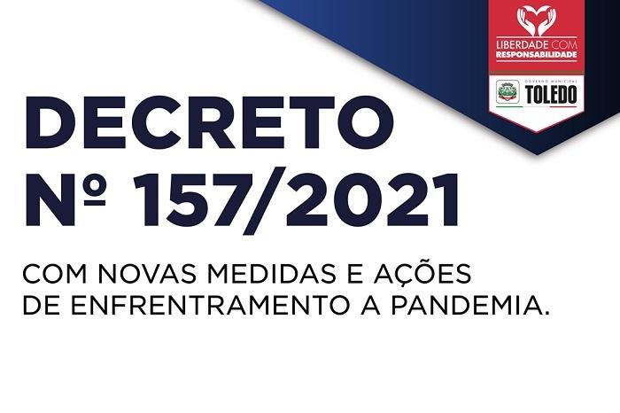 Em assembleia realizada nesta sexta-feira (28) na Associação dos Municípios do Oeste do Paraná (AMOP), a fim de unificar as medidas pelos municípios da região, a Prefeitura de Toledo publicou o Decreto nº 157/2021 com novas medidas visando o combate a propagação do coronavírus. Entre as normas estão a redução do horário de funcionamento das atividades entre às 22h e às 5h e a restrição de circulação de pessoas entre às 20h e às 5h. O decreto passa a valer a partir da sua publicação.