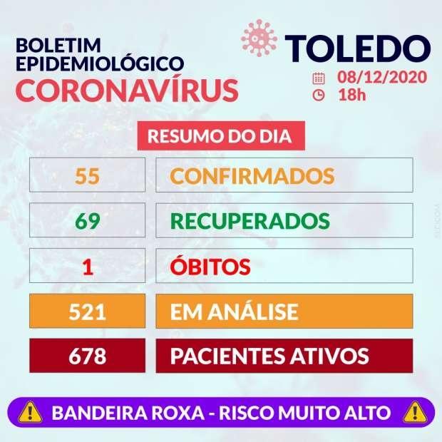De acordo com a matriz de risco criada pelo Conselho Nacional de Secretários de Saúde (Conass) e pelo Conselho Nacional de Secretarias Municipais de Saúde (Conasems), Toledo entrou no Alerta Roxo, o que representa perigo muito alto de contaminação pelo novo coronavírus (Sars-Cov-2).