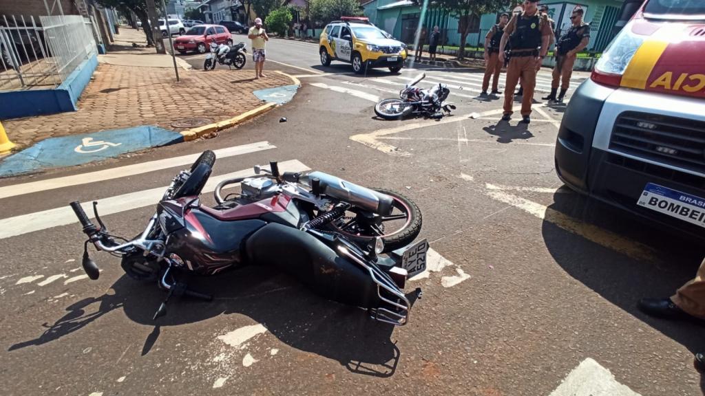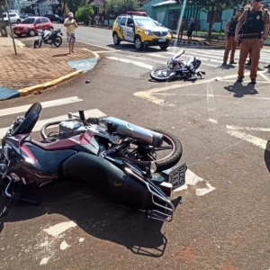 Na tarde de domingo (03), um acidente envolvendo uma viatura da Polícia Militar e duas motocicletas foi registrado no cruzamento da Rua São João com Rua Guarani no centro de Toledo.