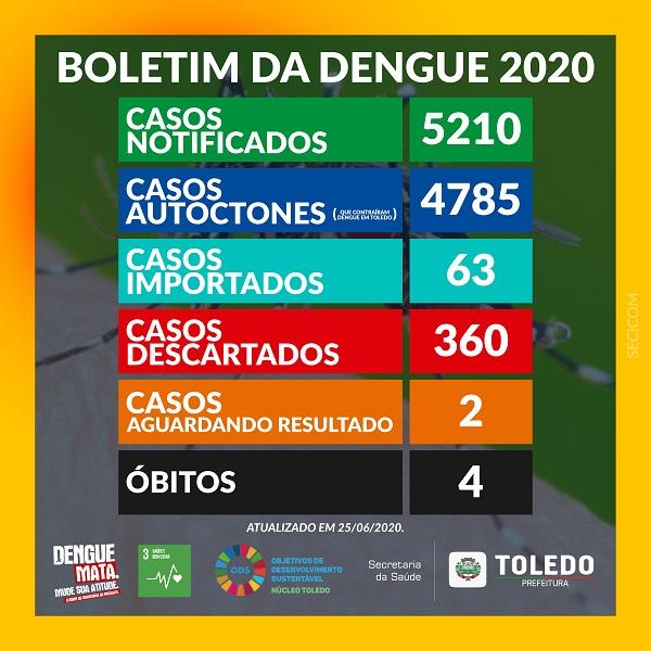 Toledo tem 4.848 casos confirmados de dengue e quatro óbitos pela doença.