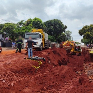 Um homem ficou soterrado em acidente de trabalho, por volta das 11h00 desta quinta-feira (21), na Rua Butiazeiro, em Santa Izabel do Oeste. A vítima estava trabalhando na obra de macro drenagem e colocação de tubulação na cidade, quando acabou ficando soterrado.
