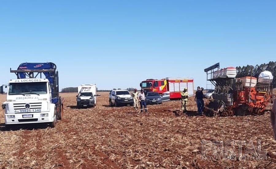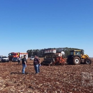 O Corpo de Bombeiros foi acionado as 13h37 de deslocou até uma plantação, pois as primeiras informações, davam conta que uma pessoa havia caído de um trator, acoplado com uma plantadeira.
