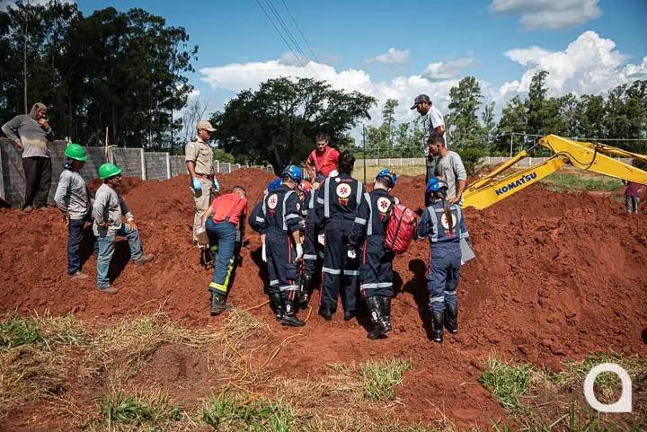 Outras pessoas que estavam no local acionaram as autoridades e tentaram da forma que conseguiram retirar a terra de cima do homem até a chegada das equipes de socorro.