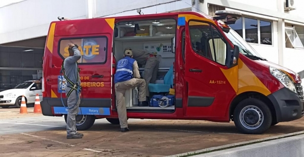 Claudemir foi socorrido por uma equipe do Corpo de Bombeiros e caminhado para UPA com uma suspeita de fratura no tornozelo.