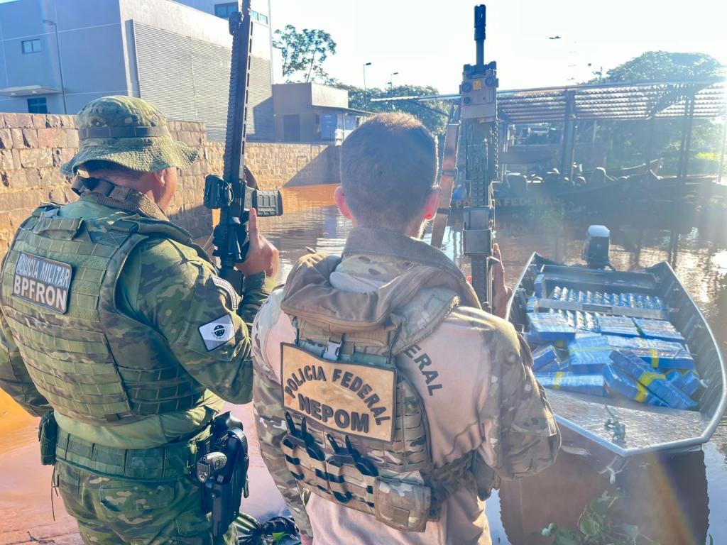Os agentes identificaram uma embarcação em atitude suspeita, que navegava em alta velocidade após sair da margem estrangeira, transportando diversos volumes em seu interior. Ao perceber a aproximação policial, o piloto abandonou a embarcação e fugiu pela mata ciliar do lado brasileiro.