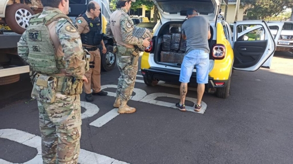 No Fiesta foram localizados 15 fardos de maconha contabilizando 300 Kg da droga, o carro não tinha alerta de furto, mas a placa original é de Blumenau-SC.