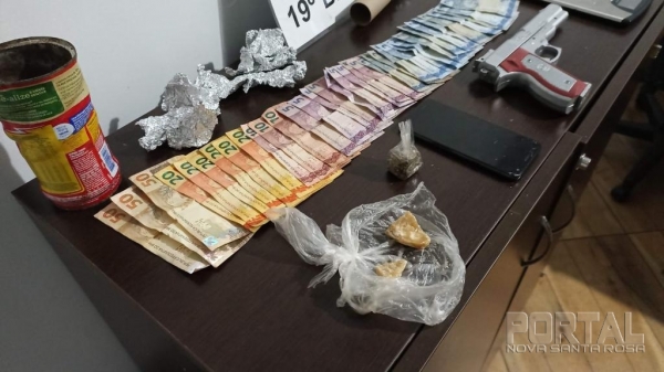 A equipe fez buscas e localizou a embalagem e a droga, sendo que posteriormente pesada a droga fracionada prontas para comercialização e as pedras brutas, totalizaram 29 gramas, cabe ressaltar que as pedras brutas, após fracionadas renderiam em torno de mais 122 pedras, no interior da casa foi localizado mais um rolo de papel alumínio, que serve para embalar a droga e um simulacro de arma de fogo.