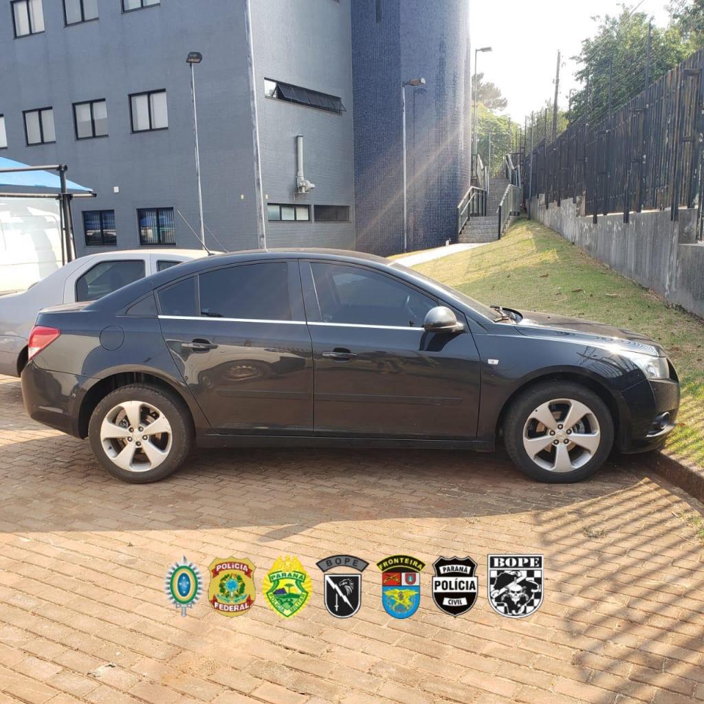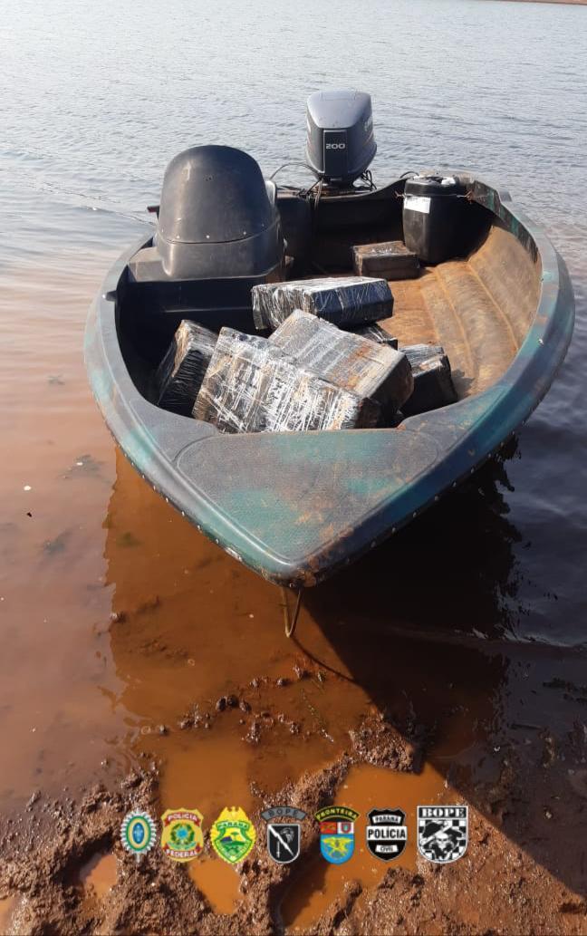 Foram apreendidos, um veículo cruze sedan com placas adulteradas e alerta de roubo ocorrido em Curitiba em 14/08/2020; uma embarcação artesanal de fibra, equipada com motor YAMAHA 200hp e aproximadamente 570kg de substância análoga à maconha.