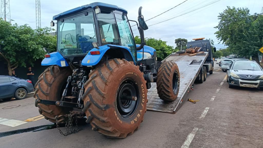 Um trator da marca New Holland, avaliado em aproximadamente R$ 250 mil, foi recuperado na manhã desta quarta-feira (05) após ter sido furtado na noite anterior, por volta das 22h, em uma fazenda no município de Ouro Verde do Oeste.