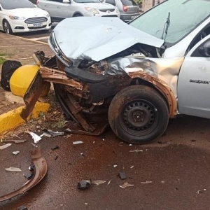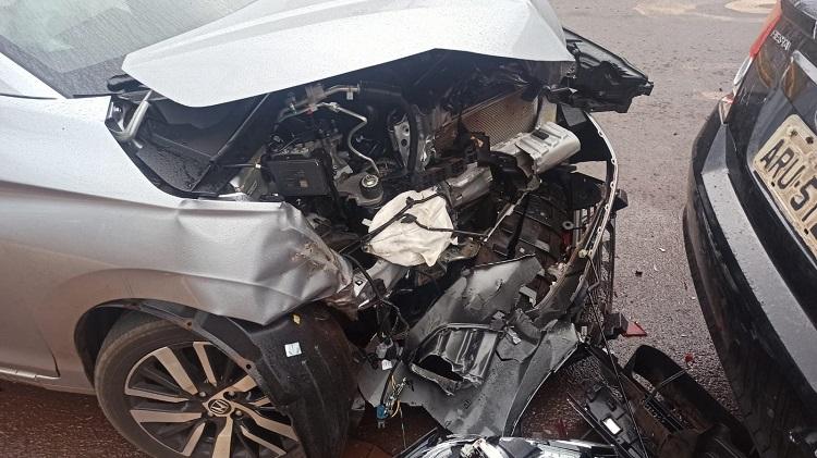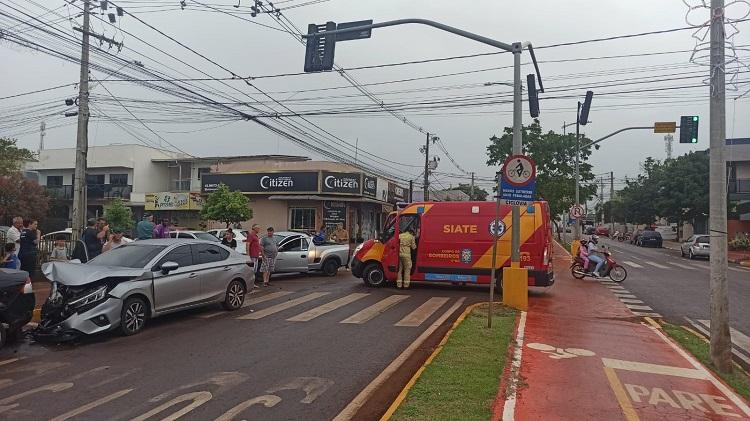 Os carros trafegavam pela Avenida em sentidos opostos e no cruzamento que é controlado por semáforo a motorista do Honda fez uma conversão à esquerda e houve a colisão, um Ford Fiesta que estava estacionado também foi atingido.