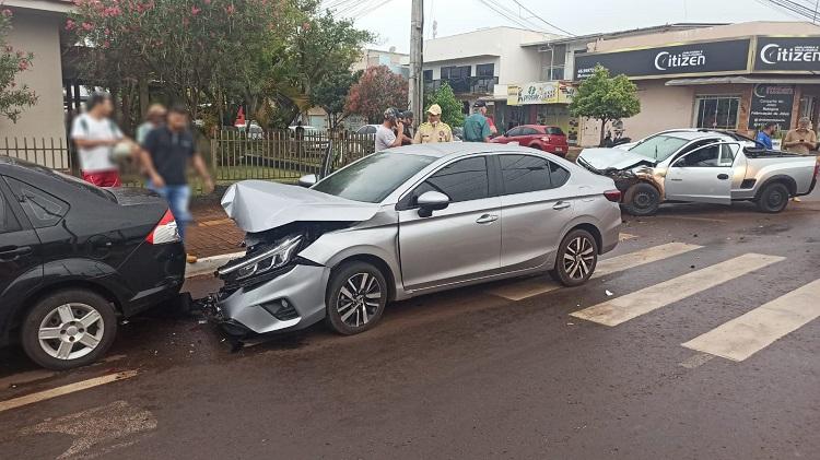 Um Chevrolet Montana e um Honda City colidiram no final da tarde desta quarta-feira feira no cruzamento da Avenida Senador Atílio Fontana com Rua Willy Barth, Jardim Panorama em Toledo.
