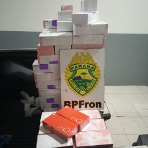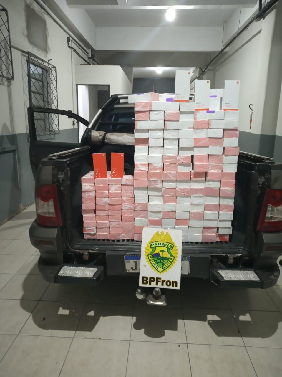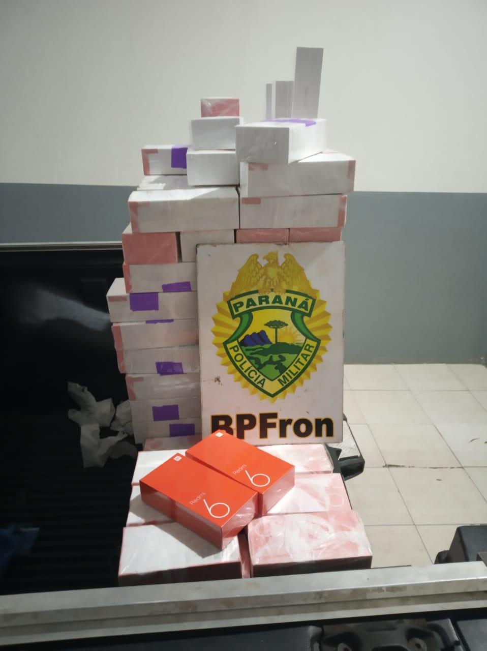 Nesta sexta-feira (12), no município de Ouro Verde do Oeste, foi abordado um veículo Fiat/Strada. Em seu interior foram encontrados 319 celulares sem os devidos desembaraços aduaneiros, avaliados em aproximadamente U$ 50.000,00 dólares.