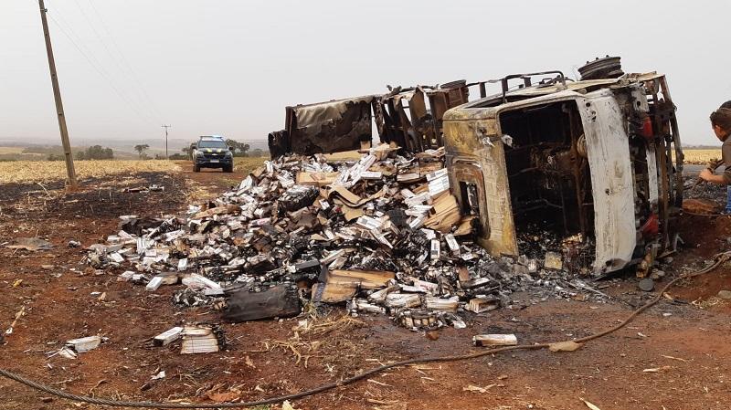 A Polícia Rodoviária Federal (PRF) prendeu na manhã desta segunda (23) na BR-163 três homens que furtavam uma carga de cigarros contrabandeados que havia sido derramada sobre a pista, após o caminhão tombar e incendiar ás margens da rodovia.