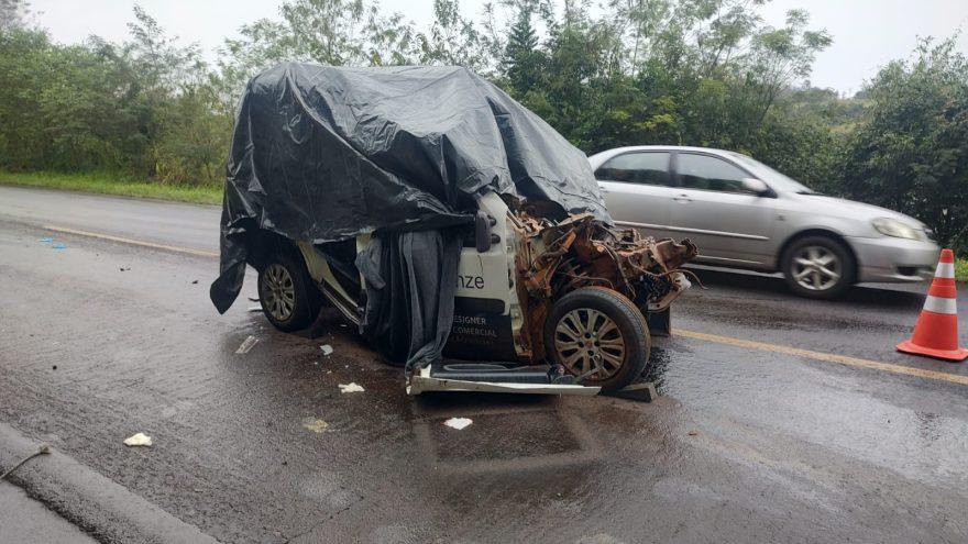 A colisão envolveu um caminhão Mercedes-Benz, com placas de Planalto, pertencente a uma empresa de transporte de cimento, e um veículo Fiat/Doblò. De acordo com informações apuradas no local, a Doblò seguia em direção a Capanema quando teria invadido a pista contrária e colidido frontalmente com o caminhão, que vinha no sentido oposto.