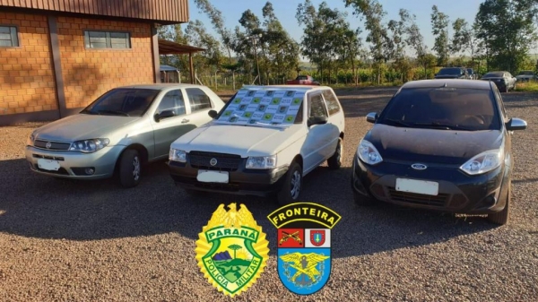 Os condutores dos veículos, dois homens e uma mulher informaram aos Policiais Militares que os veículos seriam usados para transportar cigarros contrabandeados.
