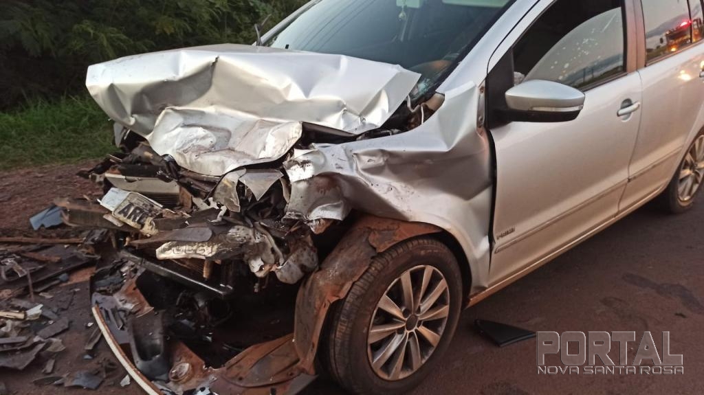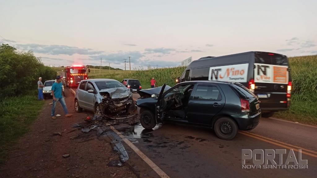 O Fiat Palio com placas de Toledo que era conduzido por uma mulher e um veículo Volkswagen Fox de Ouro Verde do Oeste por um condutor não identificado até o momento.