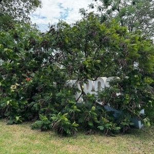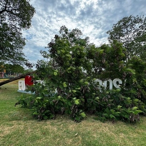 O troco de uma árvore caiu sobre o letreiro “Eu Amo Nova Santa Rosa” que está junto ao Lago Municipal, possivelmente uma rajada de vento pode ter derrubado o tronco entre quarta e quinta-feira.