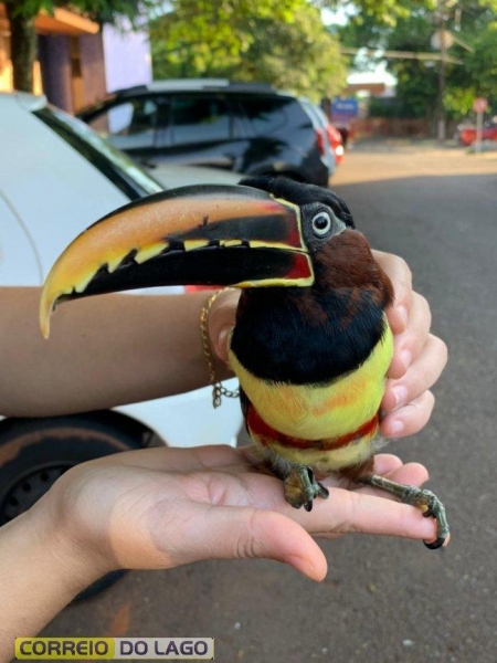 A suspeita é que eles tenham um ninho próximo ao local, pois pelo menos mais dois dos araçaris já foram vistos nas redondezas.