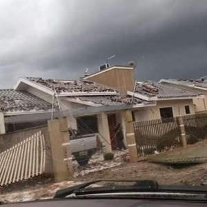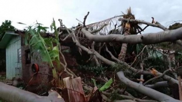 Além das casas destelhadas, árvores foram arrancadas e galhos provocaram danos na rede elétrica e boa parte do município está no escuro.