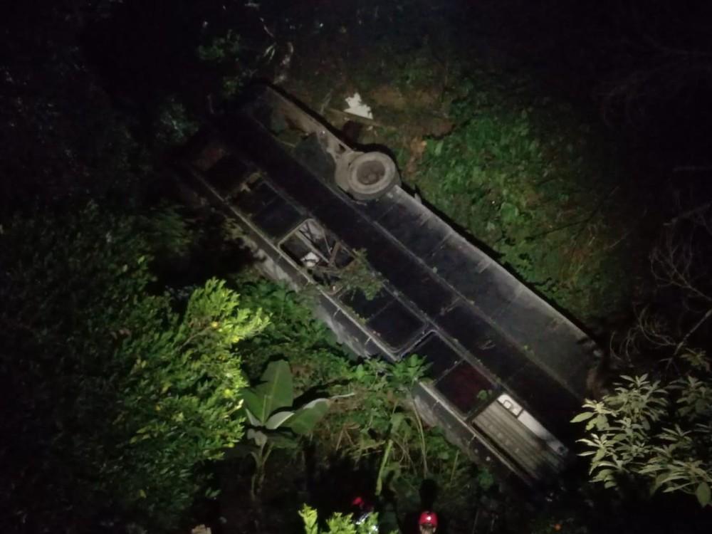 Uma testemunha disse à polícia que o ônibus ficou sem freio em uma curva. Em seguida, o veículo bateu contra um barranco, atravessou a via e caiu em uma ribanceira de cerca de 30 metros.