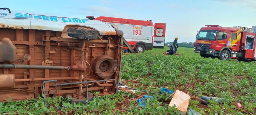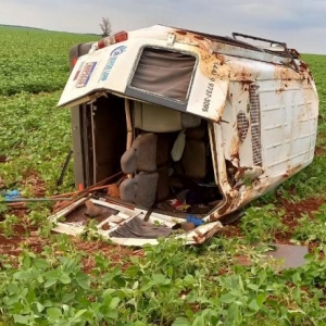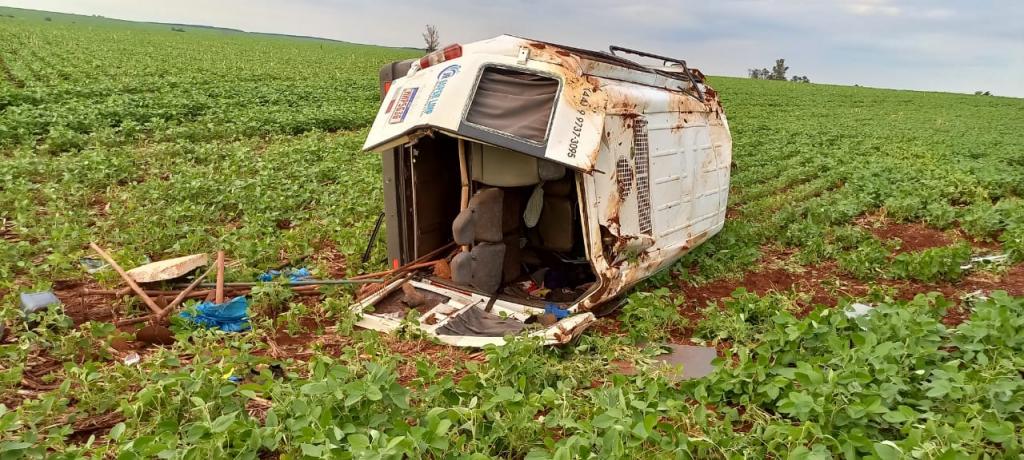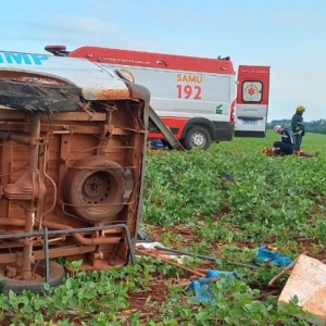 A condutora acabou perdendo o controle da direção, saiu da pista e capotou em meio a uma lavoura de soja.
